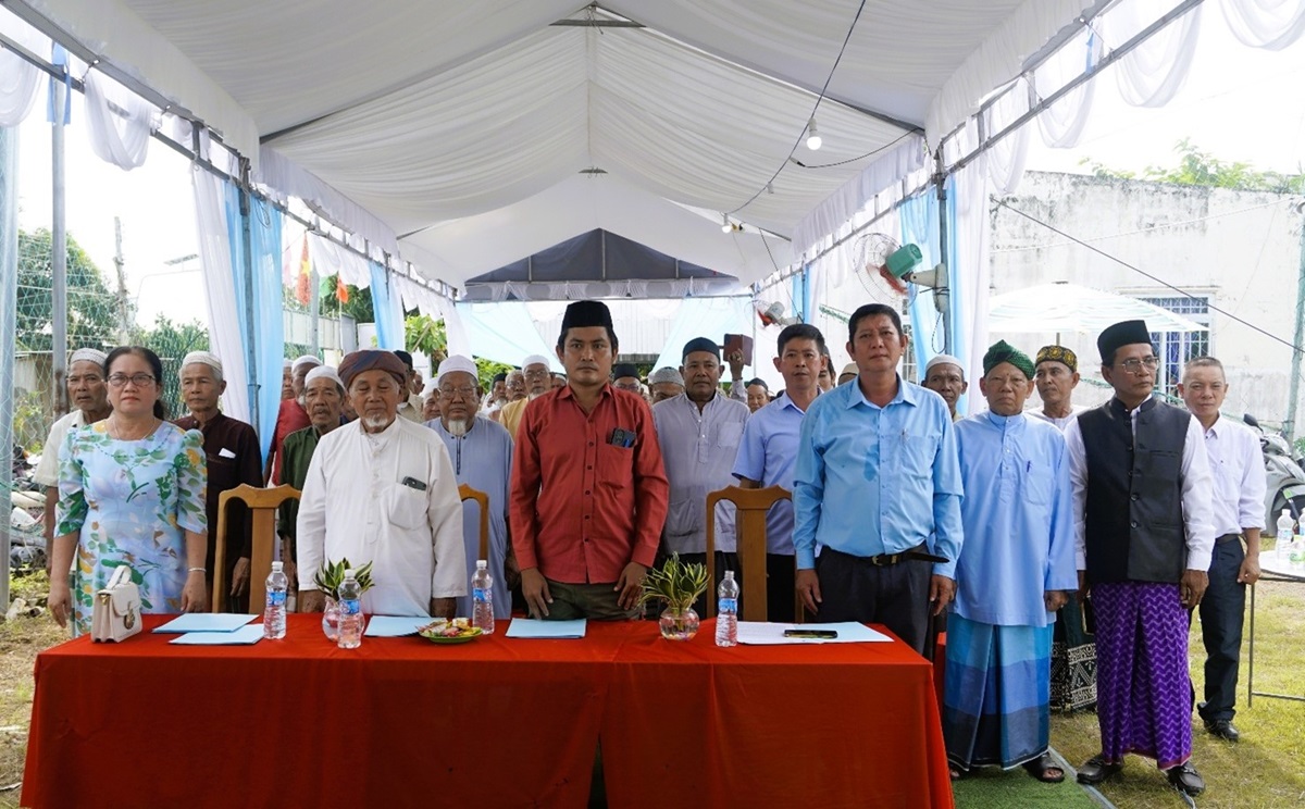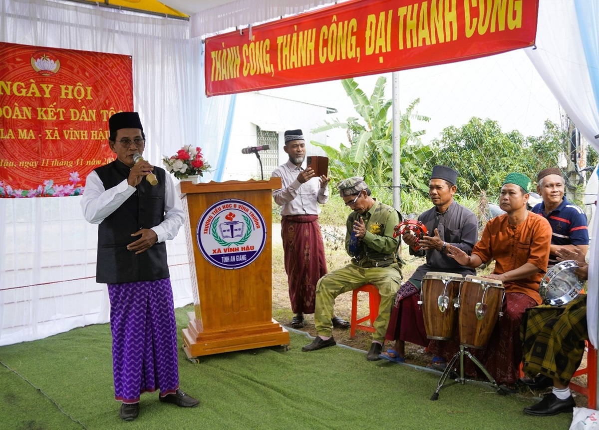 Chung vui cùng bà con tại Ngày hội Đại đoàn kết toàn dân tộc, đồng chí Nguyễn Thanh Tâm, Chủ tịch Ủy ban Mặt trận Tổ quốc Việt Nam xã đã gửi lời chúc mừng đến bà con đồng bào Chăm, đồng thời biểu dương tinh thần đoàn kết, nỗ lực và những đóng góp thiết thực của bà con trong phát triển kinh tế – xã hội, giữ gìn an ninh trật tự, và xây dựng khối đại đoàn kết toàn dân ngày càng vững mạnh.