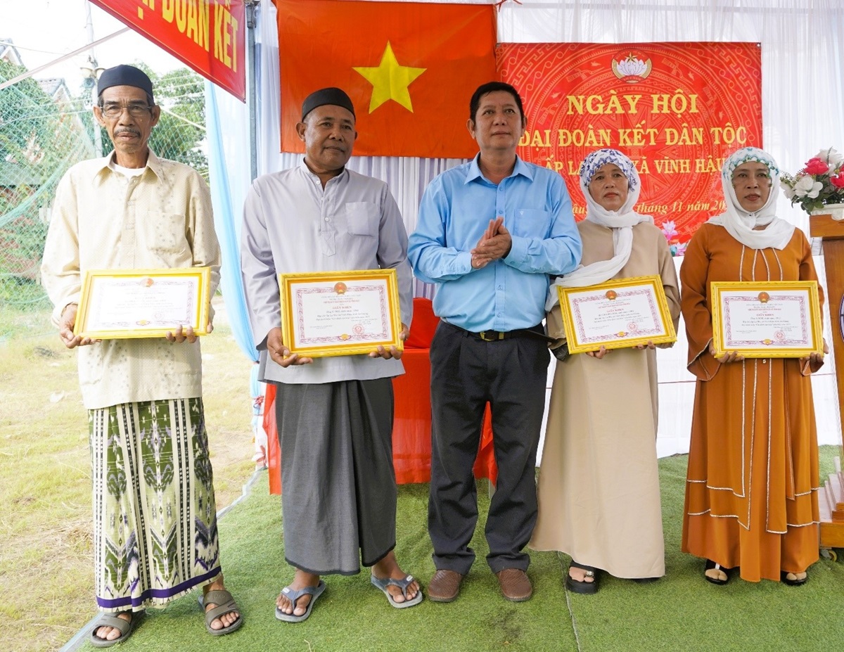 Dịp này, Ủy ban nhân dân xã Vĩnh Hậu tặng giấy khen cho 5 gia đình văn hóa tiêu biểu trong thực hiện phong trào “Toàn dân đoàn kết xây dựng đời sống văn hóa” năm 2025. Cũng nhân ngày hội, Ban đại diện Cộng đồng Hồi giáo (Islam) tỉnh An Giang tặng 50 suất quà cho hộ nghèo, cận nghèo trên địa bàn ấp.