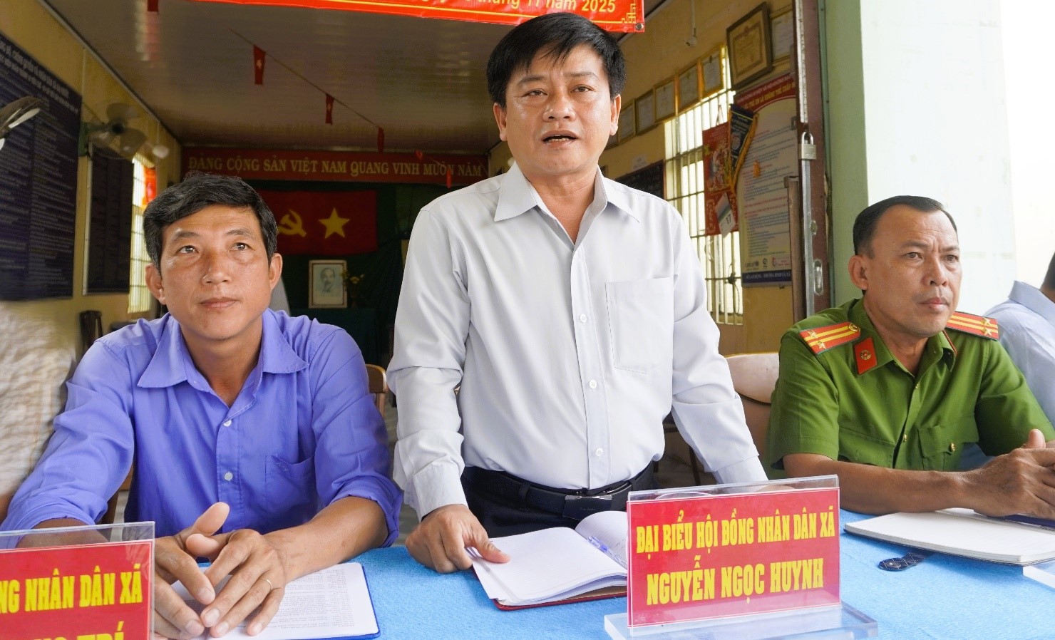 Ông Nguyễn Ngọc Huynh, Bí thư Đảng ủy, Chủ tịch Hội đồng nhân dân xã tiếp thu và trả lời ý kiến cử tri ấp Hà Bao 2