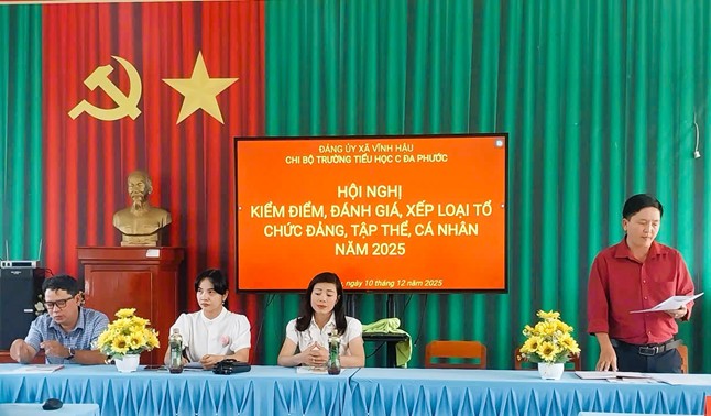 Chi bộ Trường Tiểu học C Đa Phước vừa tổ chức Hội nghị kiểm điểm, đánh giá, xếp loại chất lượng đối với tổ chức Đảng và đảng viên năm 2025. Đây là hoạt động chính trị quan trọng, được triển khai thường niên nhằm đánh giá toàn diện công tác lãnh đạo, chỉ đạo, phẩm chất chính trị, đạo đức lối sống và kết quả thực hiện nhiệm vụ của tập thể Chi bộ và từng đảng viên trong năm.