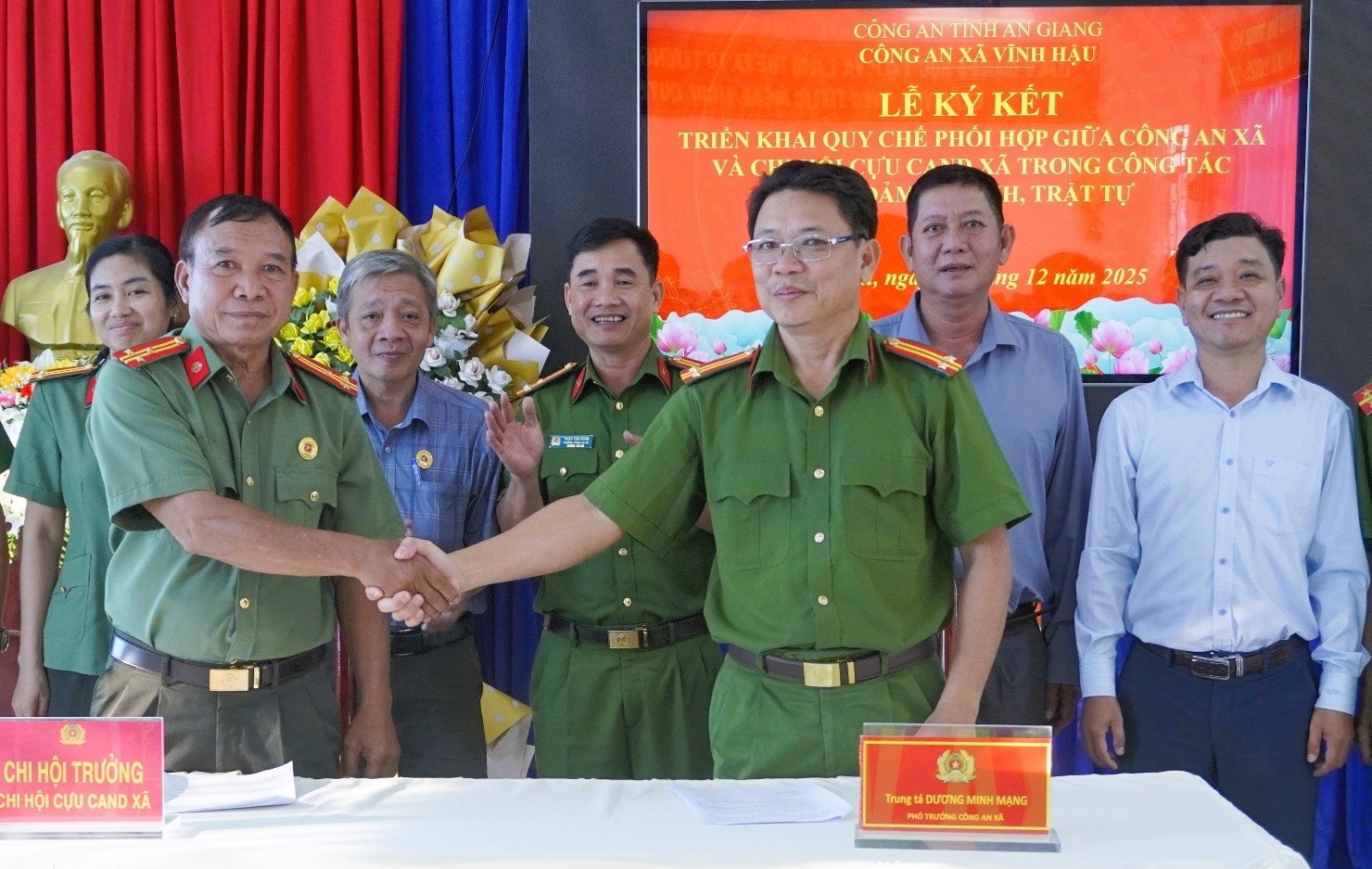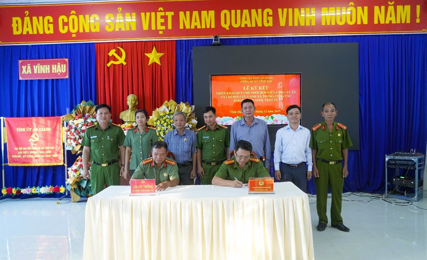 Công an xã Vĩnh Hậu vừa phối hợp với Chi hội Cựu Công an nhân dân xã tổ chức Lễ ký kết Quy chế phối hợp đảm bảo an ninh trật tự trên địa bàn.