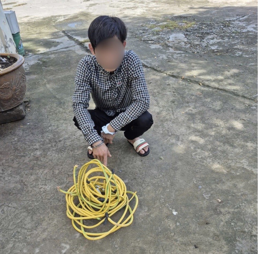 Tang vật thu giữ gồm: 03 đoạn dây điện loại Tanghenam Cable CV 50 SQmm 450/750V 2015, có tổng chiều dài khoảng 19m; 01 cây kềm bấm (đã qua sử dụng).