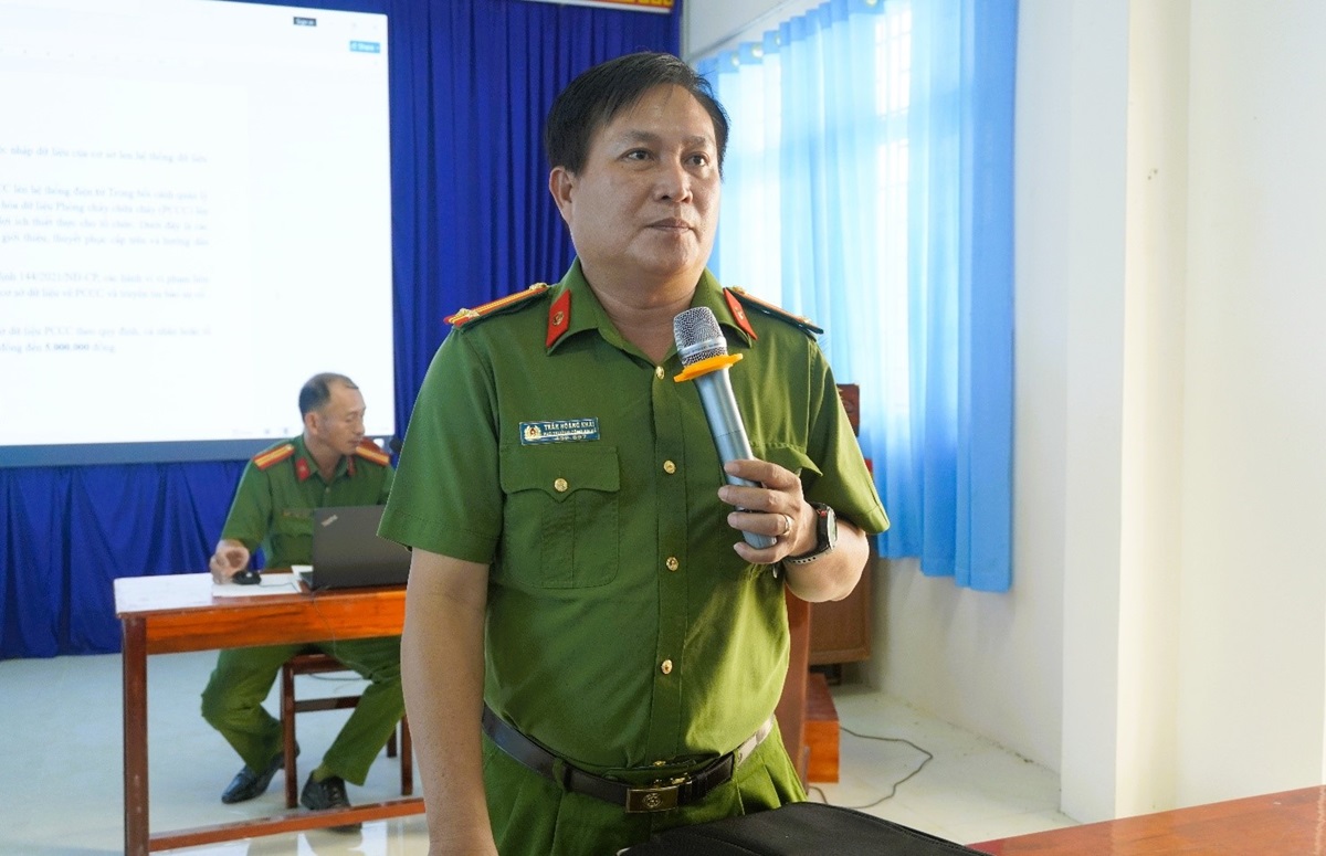 Tại buổi tuyên truyền Thiếu tá Nguyễn Hữu Đặng, Công an xã đã hướng dẫn khai báo, cập nhật thông tin của Cơ sở thuộc diện quản lý về phòng cháy, chữa cháy phục vụ xây dựng Cơ sở dữ liệu về phòng cháy, chữa cháy và cứu nạn, cứu hộ theo đúng quy định của pháp luật.
