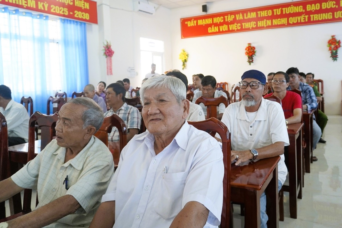Tham dự buổi tuyên truyền có Trung tá Trần Hoàng Khải, Phó trưởng Công an xã, các đồng chí Tổ An ninh trật tự cơ sở, Ban Giám hiệu các trường với sự tham gia 113 người đứng đầu cơ sở kinh doanh thuộc diện quản lý trên địa bàn xã Vĩnh Hậu.