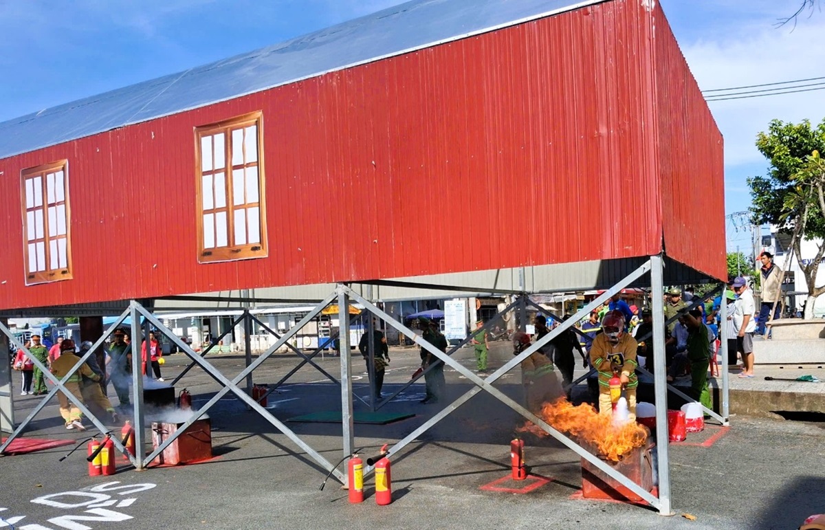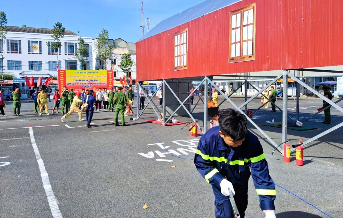Tại Hội thi, các đội trải qua 2 phần thi gồm: Phần lý thuyết trả lời câu hỏi về kiến thức phòng cháy, chữa cháy và cứu nạn, cứu hộ và phần thực hành chữa cháy, cứu nạn, cứu hộ đối với loại hình nhà ở kết hợp sản xuất kinh doanh.