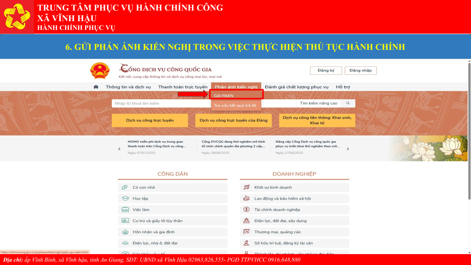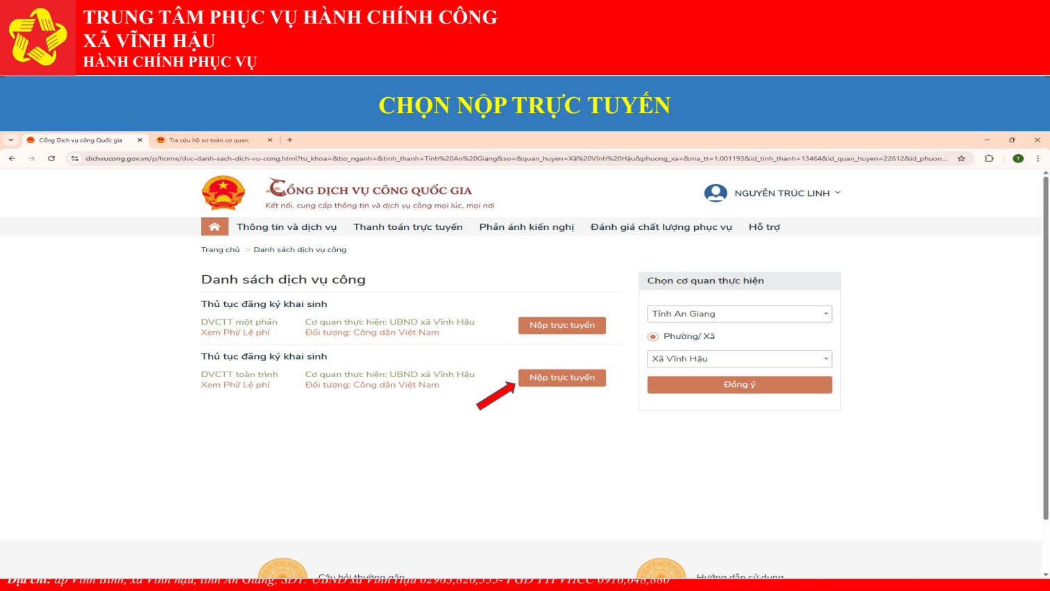 DANH SÁCH CÔNG CHỨC TRUNG TÂM PHỤC VỤ HÀNH CHÍNH CÔNG XÃ VĨNH HẬU VÀ HƯỚNG DẪN NỘP HỒ SƠ TRỰC TUYẾN