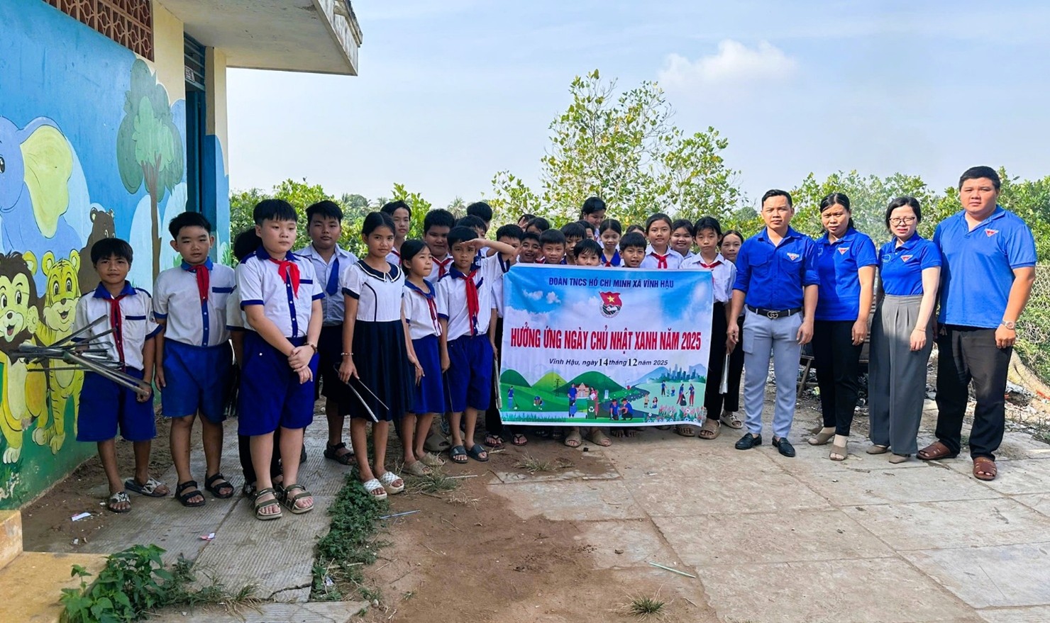 Hoạt động trong “Ngày Chủ nhật xanh” của tuổi trẻ xã Vĩnh Hậu là phát quang bụi rậm, thực hiện chương trình đổi rác thải nhựa lấy quà, bố trí các thùng rác tại nơi công cộng, sinh hoạt chuyên đề chia sẻ kiến thức về bảo vệ môi trường cho học sinh; thu gom rác thải và trồng 200 cây hoa kèn hồng …
