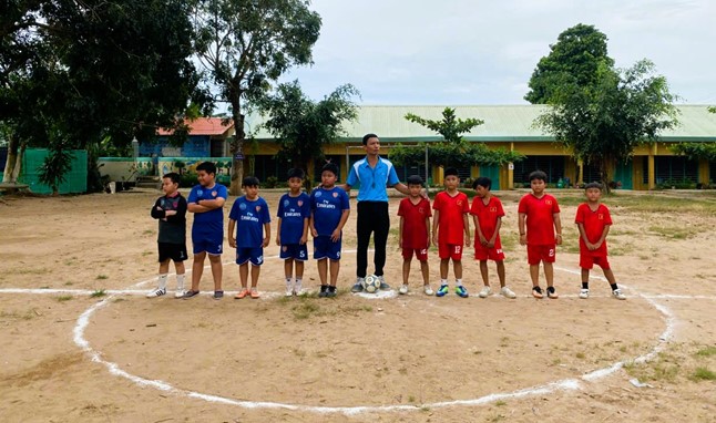 Trao huy chương cho đội bóng xuất sắc của Trường Tiểu học B Vĩnh Trường