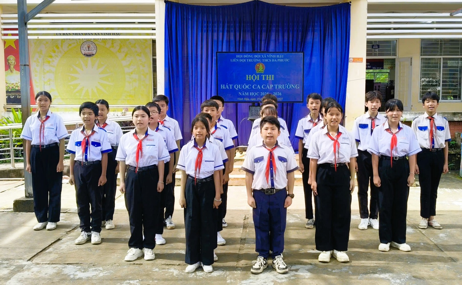 Nằm trong kế hoạch tổ chức hội thi ca múa nhạc cấp trường năm học 2025 – 2026, ngày 25/10/2025 Liên đội trường Trung học cơ sở Đa Phước tổ chức Hội thi hát quốc ca với sự tham gia của các em học sinh các khối lớp.