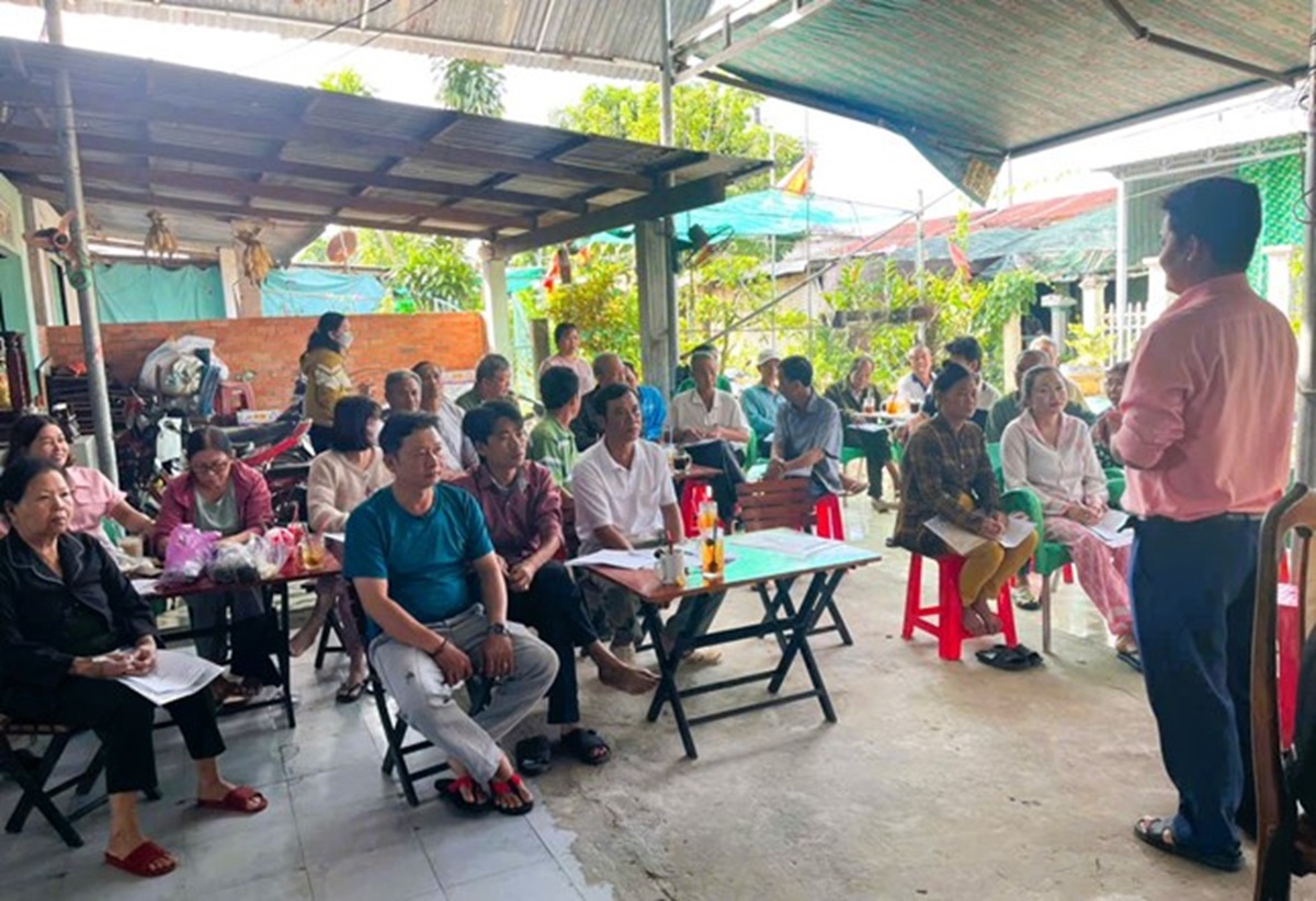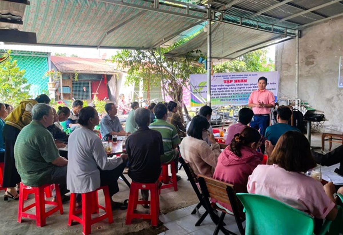 Cán bộ Trung tâm Khuyến nông truyền đạt những kiến thức về kỹ thuật trồng nấm rơm