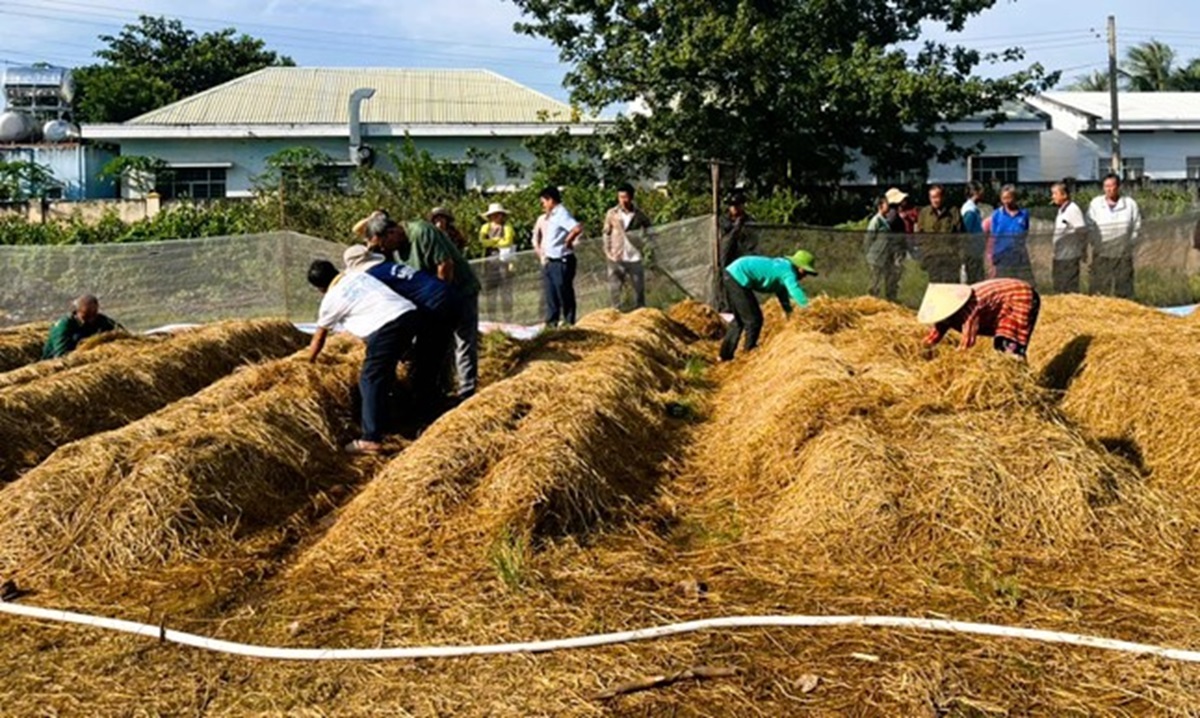 Tập huấn kỹ thuật trồng nấm rơm ngoài trời cho nông dân ấp Vĩnh Bình, xã Vĩnh Hậu