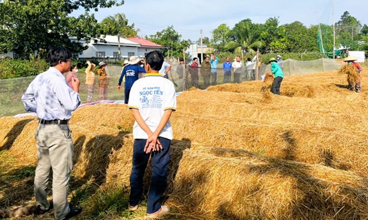 Trung tâm Khuyến nông An Giang, Trạm Kỹ thuật Nông nghiệp khu vực An Phú tổ chức tập huấn kỹ thuật trồng nấm rơm ngoài trời cho nông dân ấp Vĩnh Bình