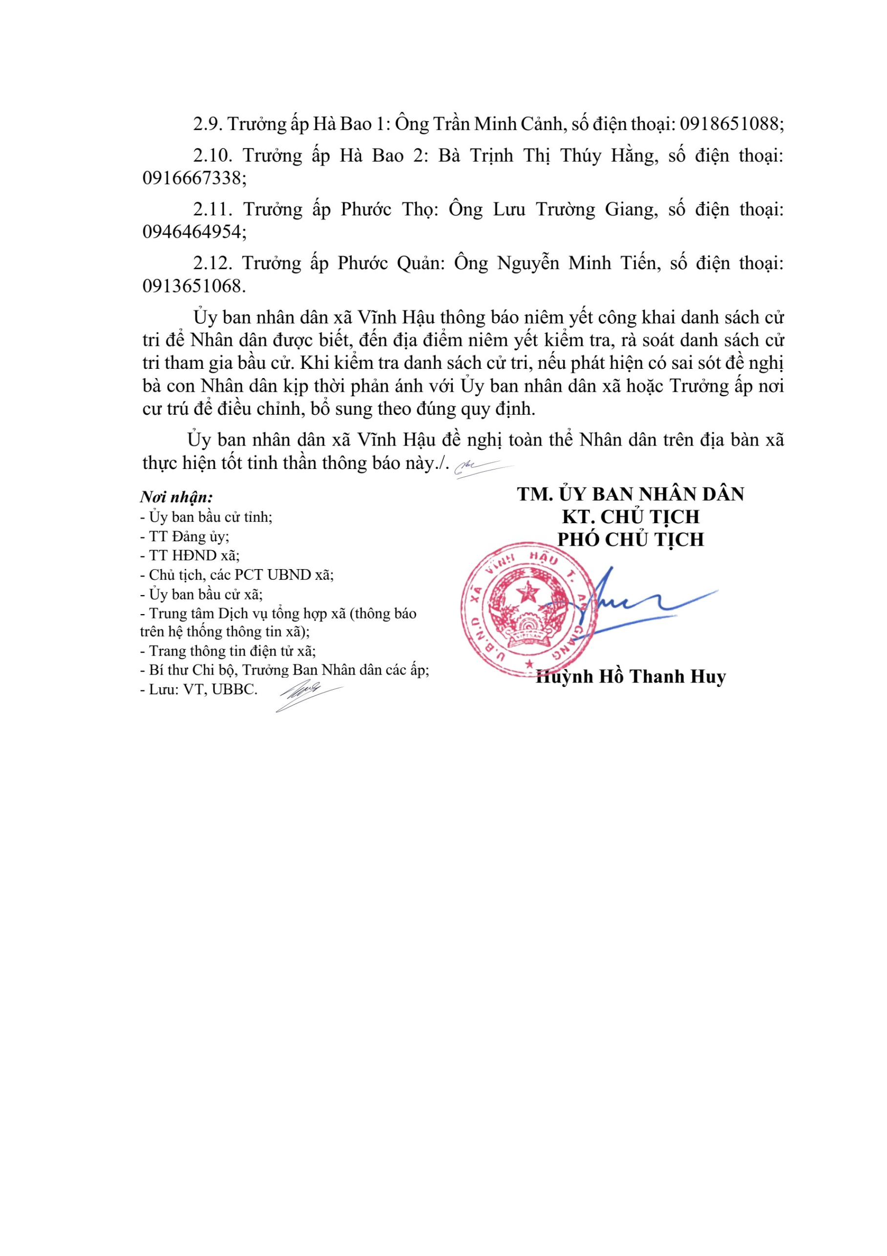 Ngày 09/01/2026, Phòng Văn hoá – Xã hội xã Vĩnh Hậu ra thông báo số 01/TB-PVHXH về việc lấy ý kiến Nhân dân đối với các cá nhân đề nghị xét tặng danh hiệu “Nhà giáo nhân dân”, “Nhà giáo Ưu tú” lần thứ 17 - năm 2026.
