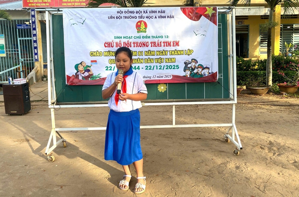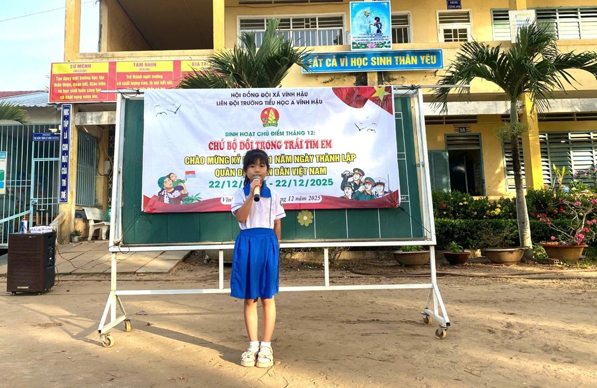Sáng 15/12/2025, Trường Tiểu học A Vĩnh Hậu tổ chức sinh hoạt dưới cờ với chủ đề “Chú bộ đội trong trái tim em”, hoạt động ý nghĩa hướng tới kỷ niệm Ngày thành lập Quân đội nhân dân Việt Nam (22/12).