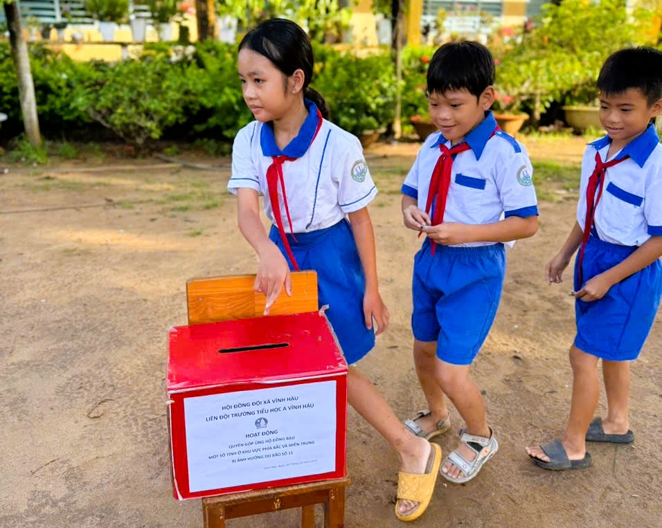Trường Tiểu học A Vĩnh Hậu ủng hộ 6 triệu 200 ngàn đồng, hướng về người dân bị ảnh hưởng cơn bão số 11