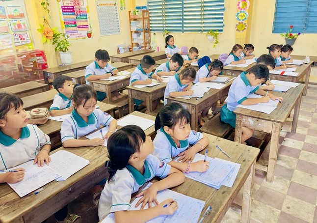 Nhằm thúc đẩy phong trào "Rèn chữ viết đúng và đẹp" trong nhà trường, trau dồi kĩ năng viết chữ và trình bày bài đẹp, góp phần nâng cao chất lượng dạy và học, phát huy vai trò, trách nhiệm của giáo viên và duy trì những nền nếp, thói quen tốt của học sinh trong học tập, trường Tiểu học A Vĩnh Trường vừa tổ chức hội thi ''Viết chữ đúng và đẹp cấp trường'' năm học 2025 - 2026.