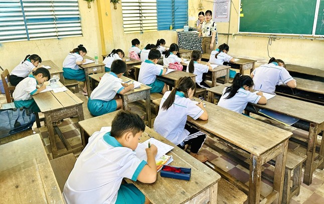 Các em học sinh chăm chú, tập trung hoàn thiện từng bài thi của mình.