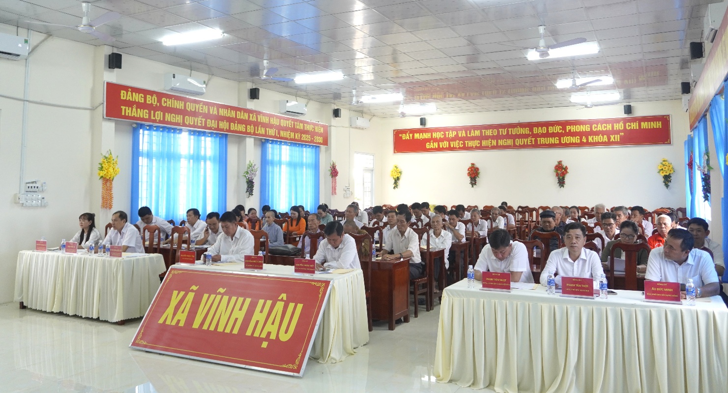 Sáng ngày 29/9/2025, Ủy ban Mặt trận Tổ quốc Việt Nam và các tổ chức đoàn thể xã Vĩnh Hậu tổ chức Hội nghị điển hình tiên tiến lần thứ I, giai đoạn 2025 - 2030. Tham dự hội nghị có đồng chí Nguyễn Thanh Việt, Phó bí thư Thường trực Đảng ủy; đồng chí Nguyễn Thanh Tâm, Chủ tịch Ủy ban Mặt trận Tổ quốc Việt Nam xã; và 28 cá nhân điển hình tiên tiến được tuyên dương, khen thưởng