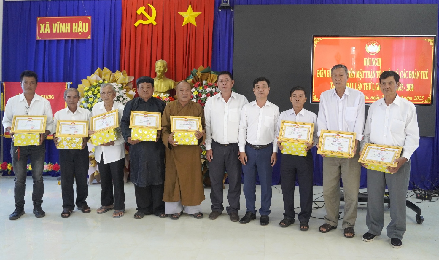 Dịp này, Ủy ban Mặt trận Tổ quốc Việt Nam xã Vĩnh Hậu phát động phong trào thi đua yêu nước giai đoạn 2025 - 2030; tặng giấy khen cho 28 cá nhân có thành tích xuất sắc trong công tác thi đua, khen thưởng giai đoạn 2020 - 2025.