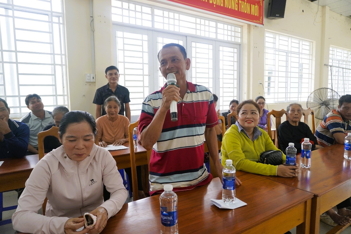 Ông Trần Thanh Sơn, Phó Bí thư Đảng ủy, Chủ tịch Ủy ban nhân dân xã, Chủ tịch Hội đồng Nghĩa vụ Quân sự xã phát biểu kết luận hội nghị