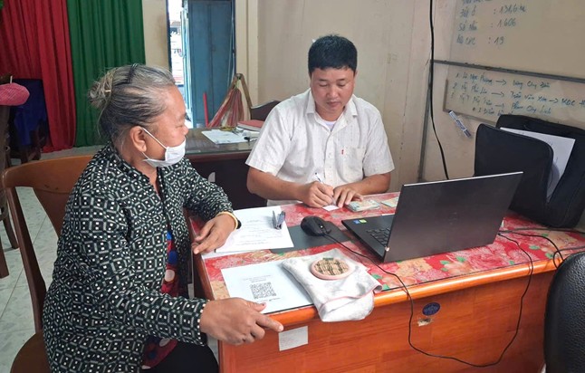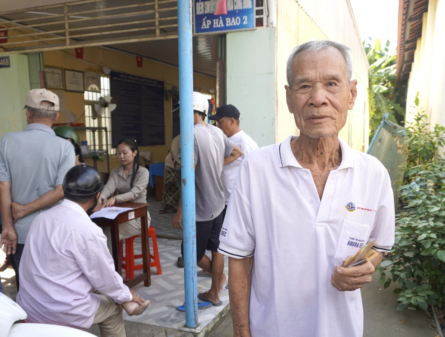 Ông Nguyễn Văn Lữ, người dân ấp Hà Bao 2, đối tượng người có công với cách mạng đến nhận quà của Đảng, Nhà nước nhân dịp Đại hội Đảng và Tết Nguyên đán.