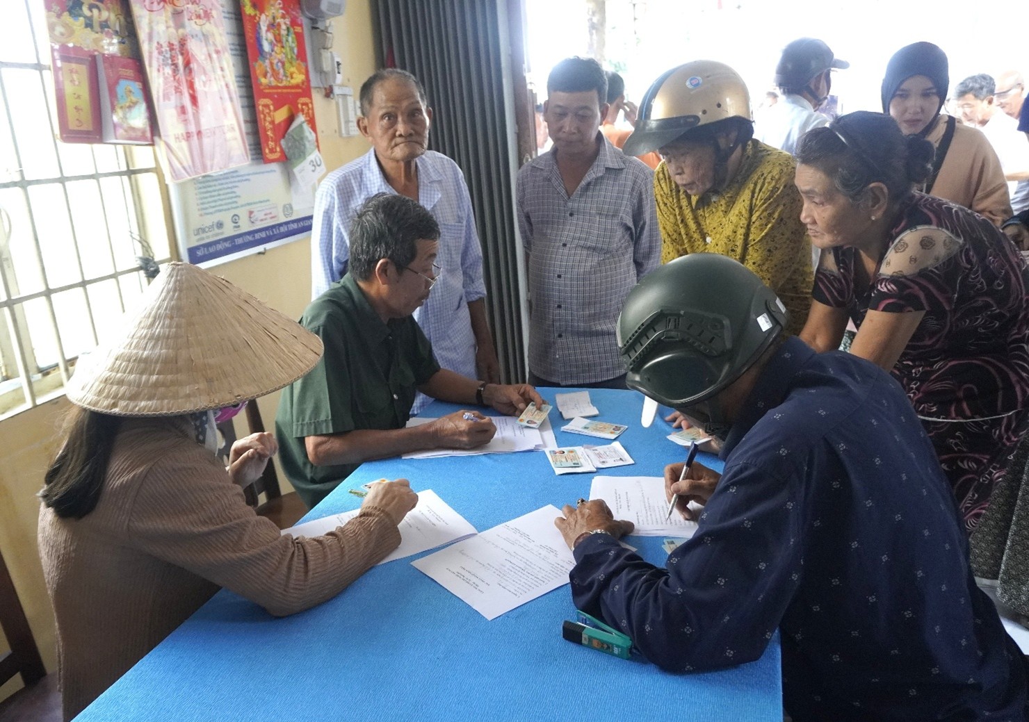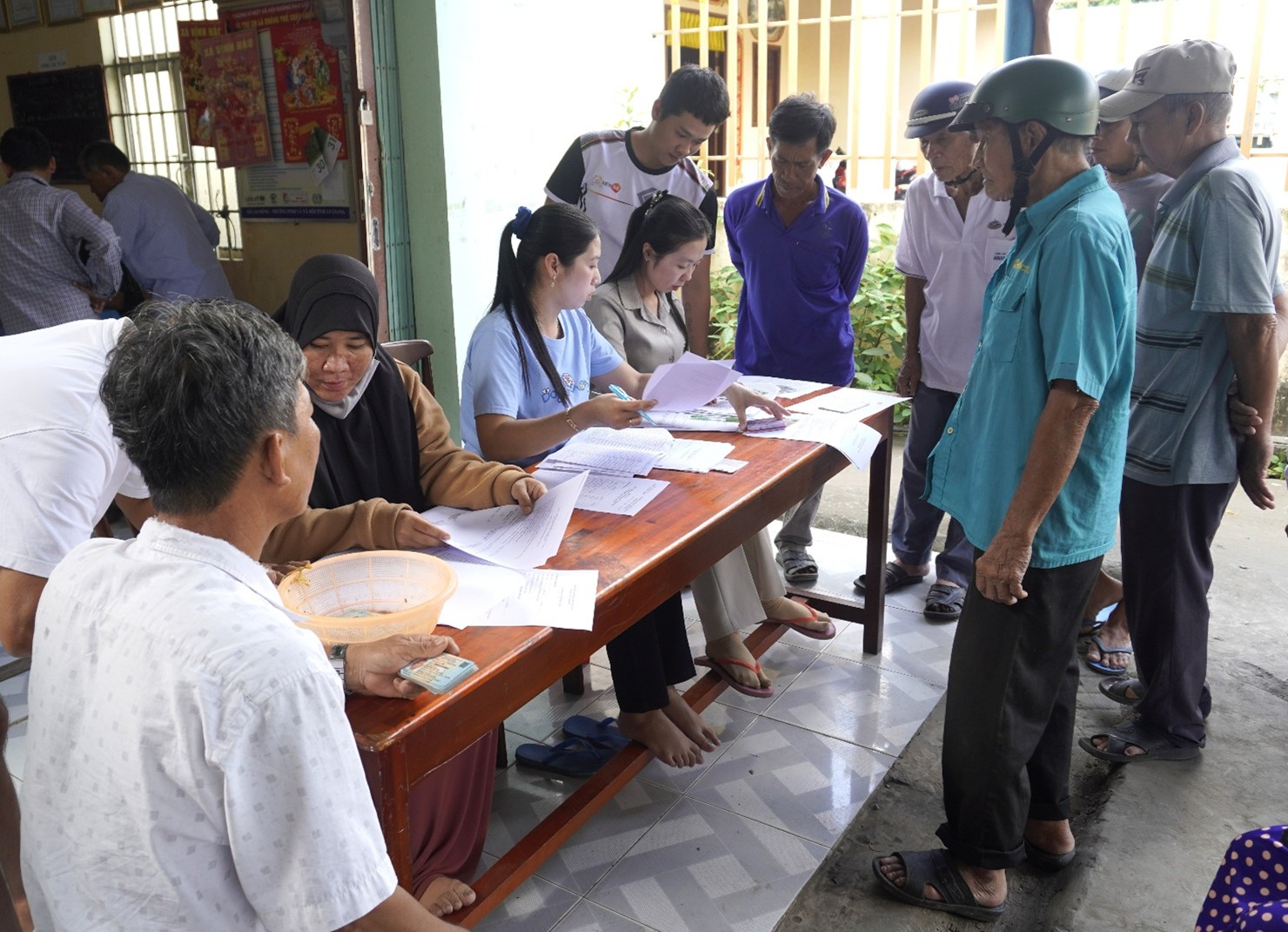 Người dân ấp Hà Bao 1 đến nhận quà của Đảng, Nhà nước nhân dịp Đại hội Đảng và Tết Nguyên đán.