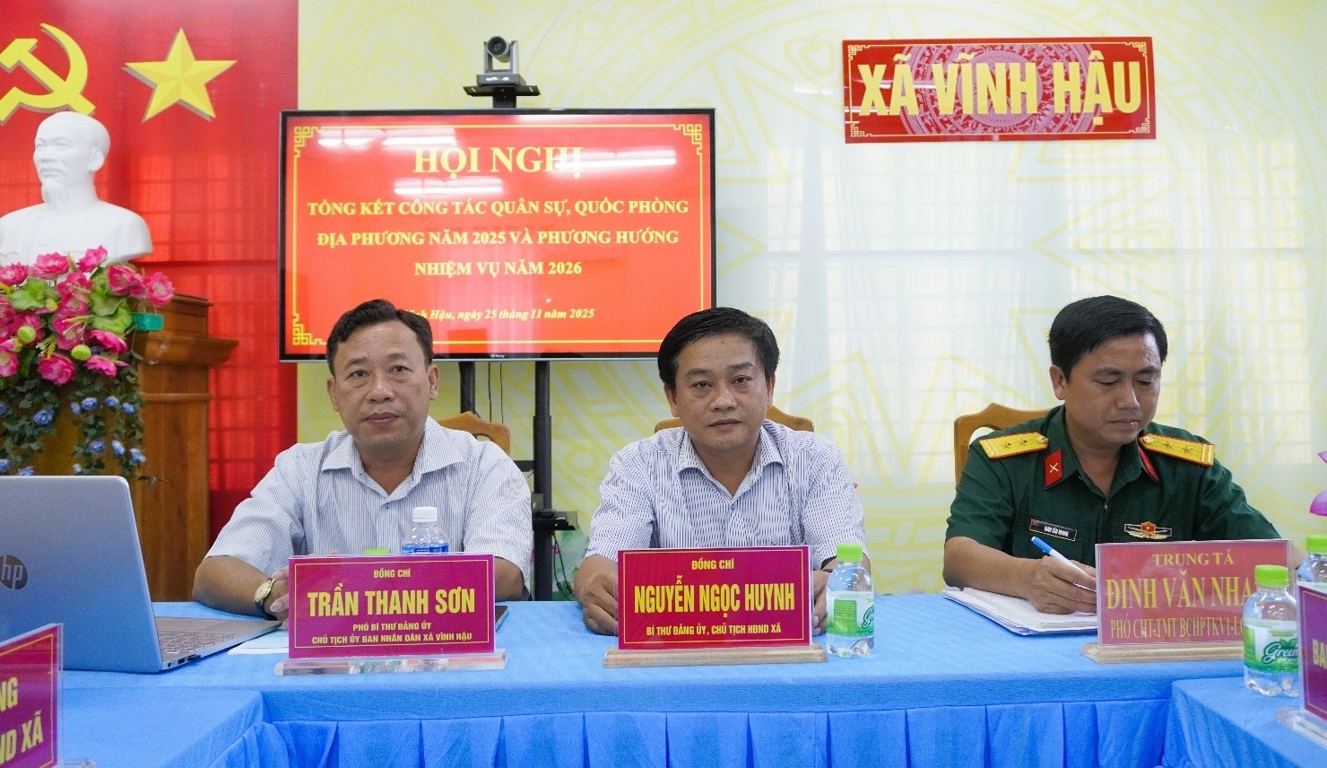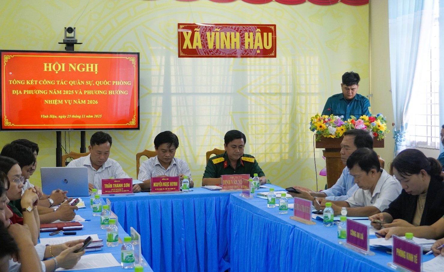Chiều ngày 25/11/2025, Ban Chỉ huy Quân sự xã Vĩnh Hậu tổ chức Hội nghị tổng kết công tác Quốc phòng, Quân sự địa phương năm 2025 và triển khai nhiệm vụ năm 2026.