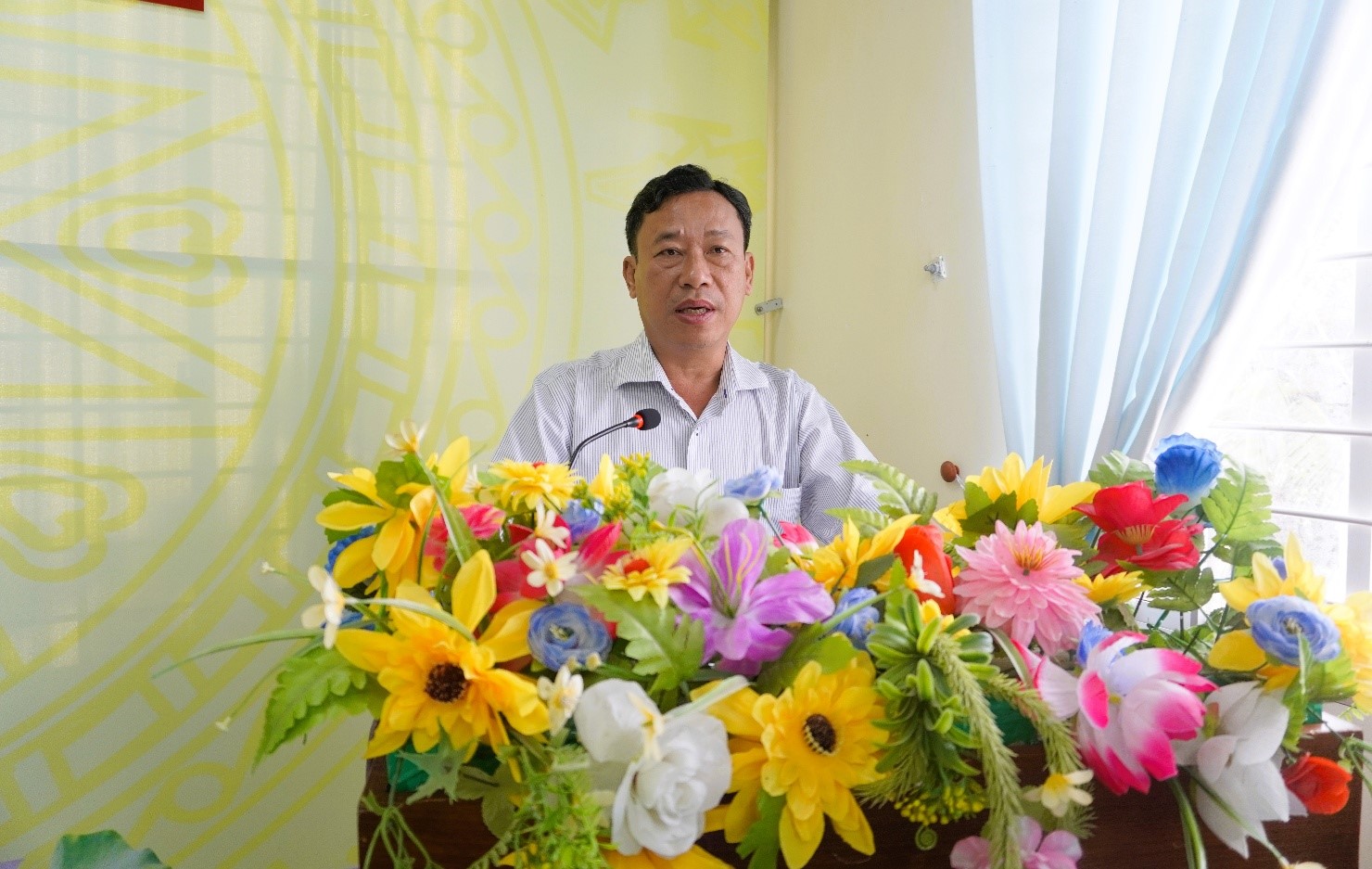 Đồng chí Trần Thanh Sơn, Phó Bí thư Đảng ủy, Chủ tịch Uỷ ban nhân dân xã phát biểu tại Hội nghị