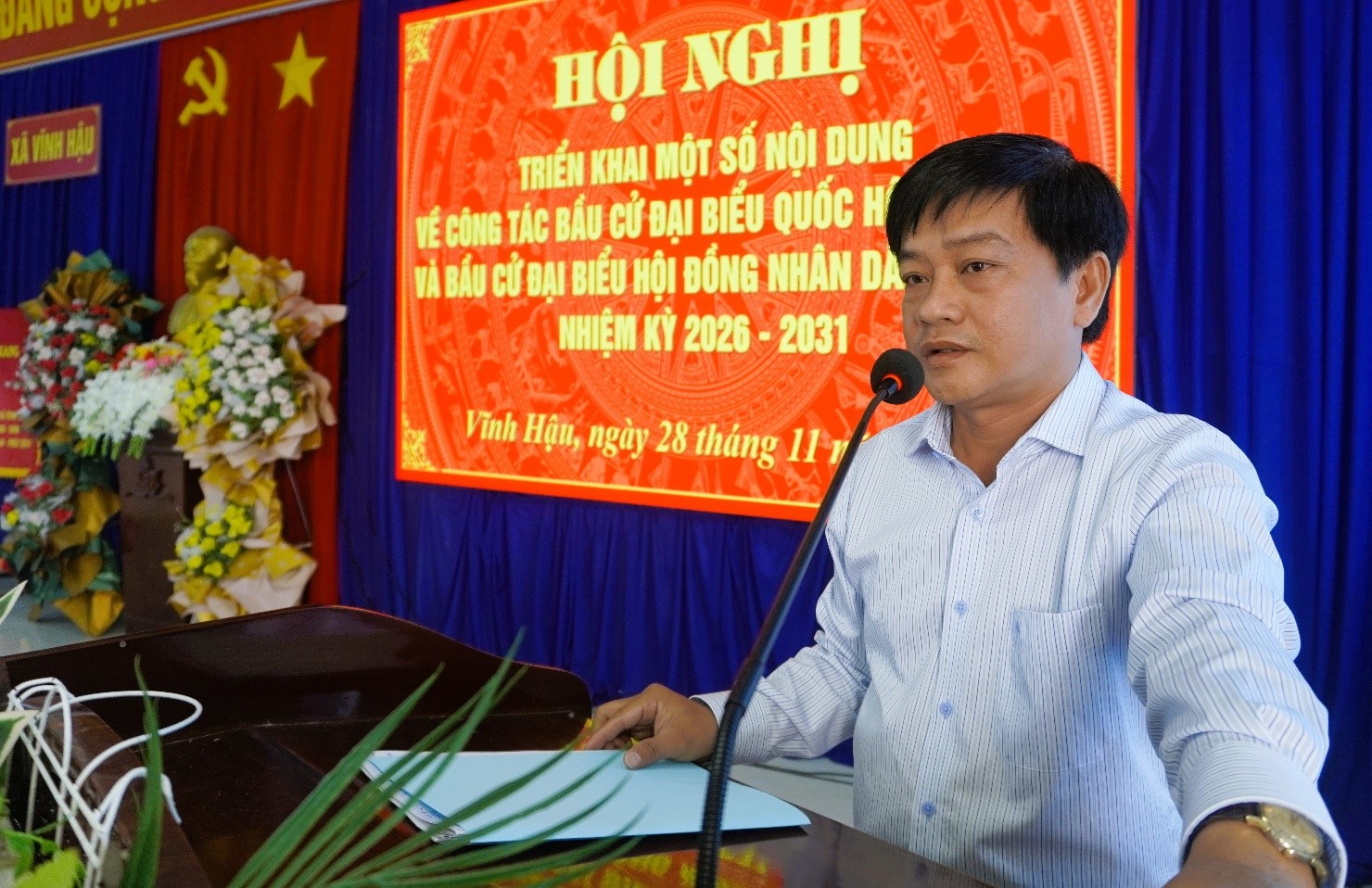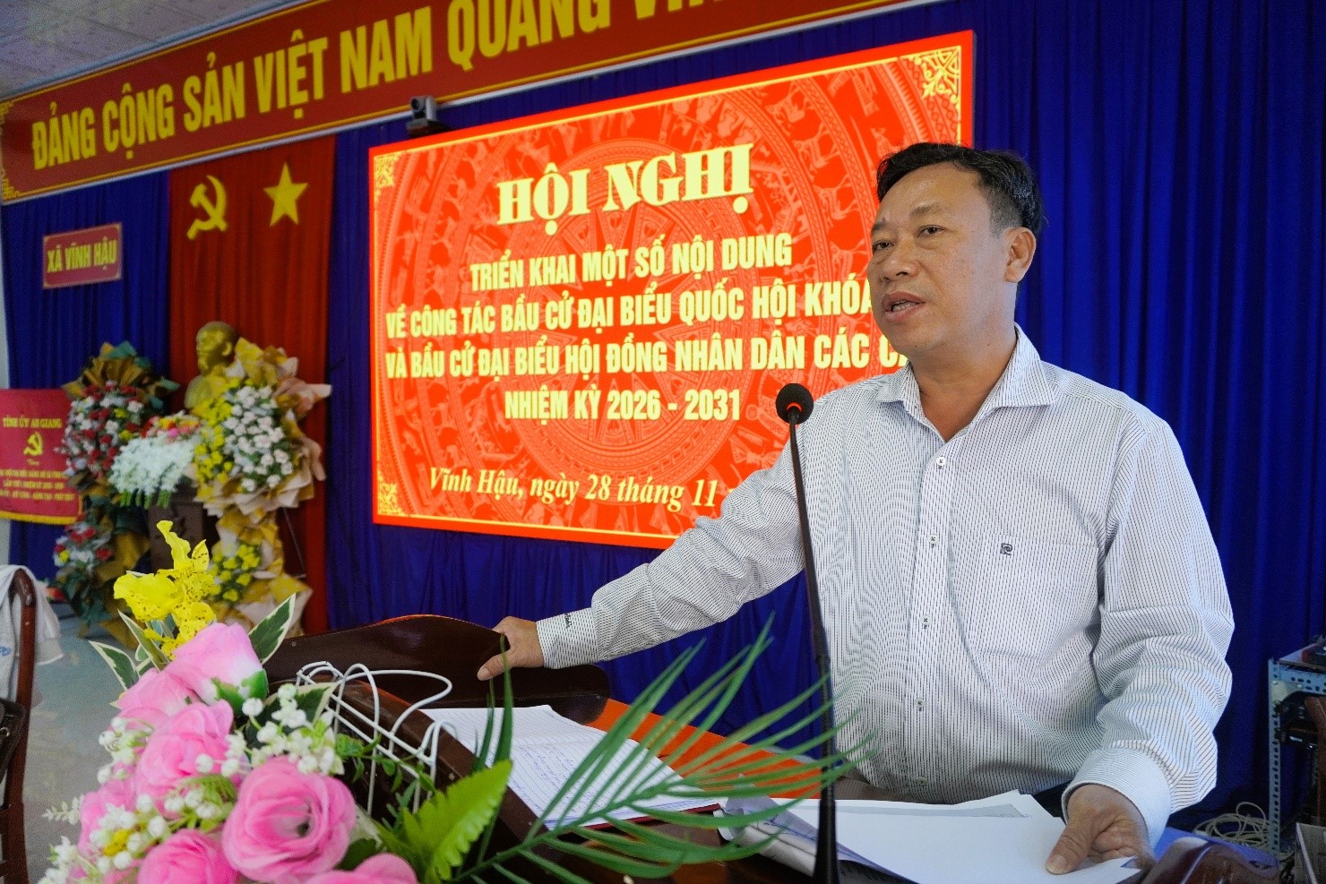 Vĩnh Hậu tổ chức Hội nghị triển khai một số nội dung về công tác bầu cử đại biểu Quốc hội khóa XVI và đại biểu Hội đồng nhân dân các cấp, nhiệm kỳ 2026 - 2031