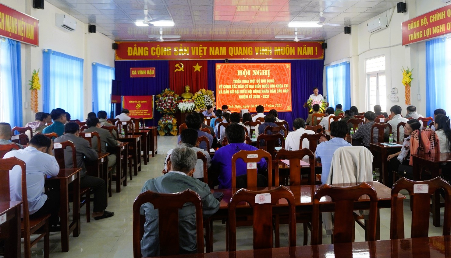 Sáng ngày 28/11/2025, Đảng ủy xã Vĩnh Hậu tổ chức Hội nghị triển khai một số nội dung về công tác bầu cử đại biểu Quốc hội khóa XVI và đại biểu Hội đồng nhân dân các cấp nhiệm kỳ 2026 - 2031.