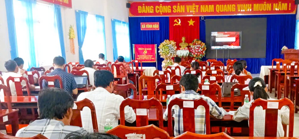 Quang cảnh Hội nghị trực tuyến bồi dưỡng nghiệp vụ công tác kiểm tra, giám sát năm 2025 tại xã Vĩnh Hậu