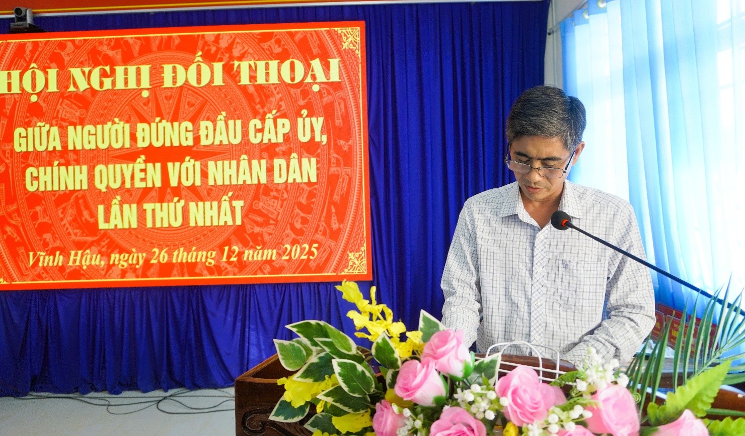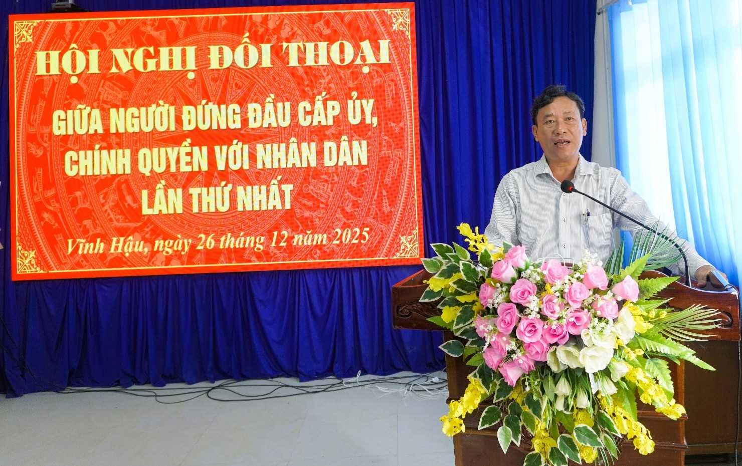 Sáng ngày 26/12/2025, Đảng ủy, Ủy ban nhân dân xã Vĩnh Hậu tổ chức Hội nghị đối thoại trực tiếp giữa người đứng đầu cấp ủy, chính quyền với Nhân dân lần thứ nhất.