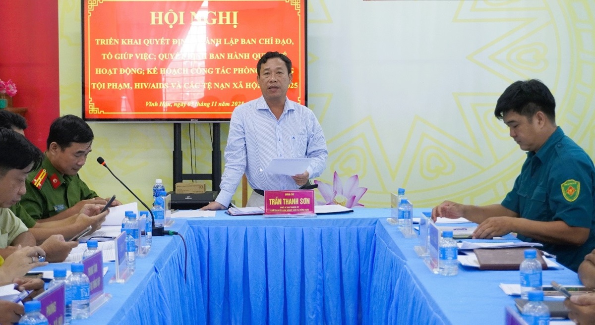 Tại hội nghị, Trung tá Dương Minh Mạng, Phó Trưởng Công an xã Vĩnh Hậu đã thông qua các Quyết định về việc thành lập Ban Chỉ đạo và Tổ giúp việc phòng, chống tội phạm, HIV/AIDS, tệ nạn xã hội và xây dựng phong trào Toàn dân bảo vệ an ninh Tổ quốc xã Vĩnh Hậu; Quyết định về việc ban hành Quy chế hoạt động của Ban Chỉ đạo và Tổ giúp việc phòng, chống tội phạm, HIV/AIDS, tệ nạn xã hội và xây dựng phong trào Toàn dân bảo vệ an ninh Tổ quốc xã Vĩnh Hậu; Kế hoạch công tác phòng, chống tội phạm, HIV/AIDS và các tệ nạn xã hội năm 2025.