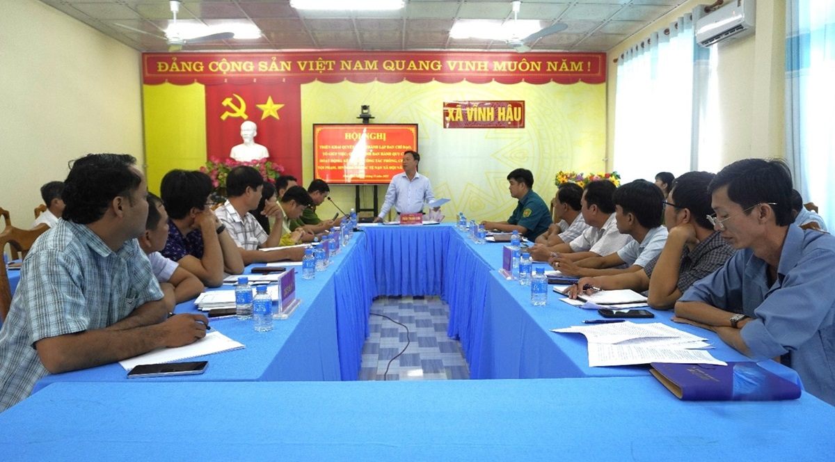 Trung tá Dương Minh Mạng, Phó Trưởng Công an xã Vĩnh Hậu thông qua các Quyết định về việc thành lập Ban Chỉ đạo và Tổ giúp việc phòng, chống tội phạm, HIV/AIDS, tệ nạn xã hội và xây dựng phong trào Toàn dân bảo vệ an ninh Tổ quốc xã Vĩnh Hậu