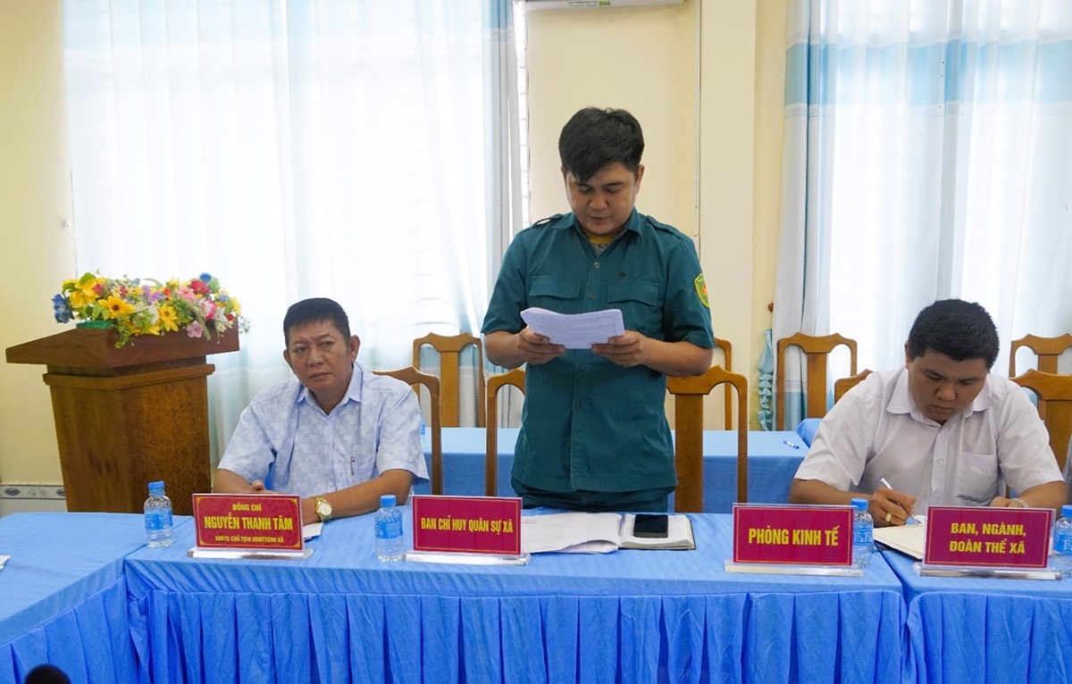 Đồng chí Huỳnh Vũ Linh, Phó Chỉ huy trưởng Ban Chỉ huy Quân sự xã thông qua thông qua kế hoạch bình chọn công dân