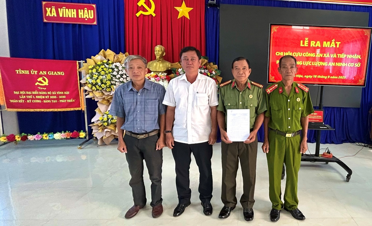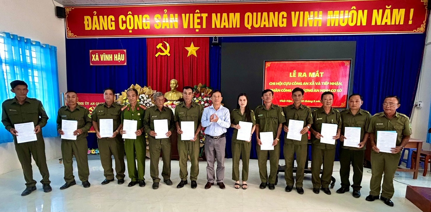 Sáng ngày 18/9/2025, tại hội trường Đảng ủy xã, Hội Cựu Công an Nhân dân xã Vĩnh Hậu long trọng tổ chức Lễ công bố thành lập Chi hội và chỉ định lãnh đạo Chi hội Cựu Công an Nhân dân xã. Đến dự Lễ công bố có đồng chí Nguyễn Thanh Việt, Phó Bí thư Thường trực Đảng ủy; đồng chí Trần Thanh Sơn, Phó Bí thư Đảng ủy, Chủ tịch Uỷ ban nhân dân xã; đồng chí Nguyễn Thanh Tâm, Chủ tịch Ủy ban Mặt trận Tổ quốc Việt Nam xã; cùng các đồng chí trong Chi hội cựu Công an nhân dân xã.