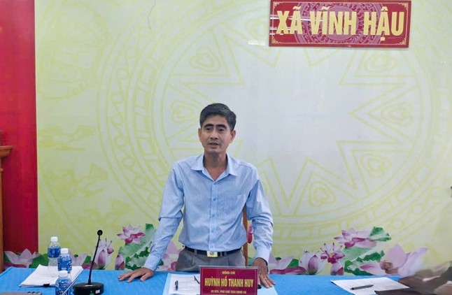 Ông Huỳnh Hồ Thanh Huy, Phó Chủ tịch Ủy ban nhân dân xã, Trưởng Ban Chỉ đạo phổ cập giáo dục, xóa mù chữ xã Vĩnh Hậu phát biểu tại cuộc họp