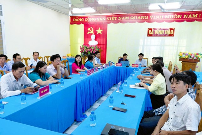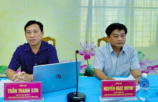 Tham dự tại điểm cầu xã Vĩnh Hậu có các đồng chí: Nguyễn Ngọc Huynh, Bí thư Đảng ủy, Chủ tịch Hội đồng nhân dân xã; Trần Thanh Sơn, Phó Bí thư Đảng ủy, Chủ tịch Ủy ban nhân dân xã.