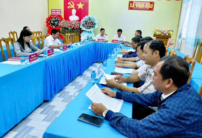 Tham dự tại điểm cầu xã Vĩnh Hậu có đồng chí Nguyễn Thanh Việt, Phó Bí thư Thường trực Đảng ủy xã; đồng chí Trần Thanh Sơn, Phó Bí thư Đảng ủy, Chủ tịch Ủy ban nhân dân xã.
